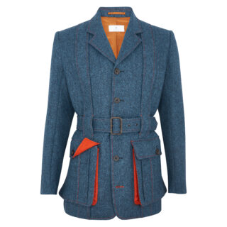 Lucan Dandy Norfolk Jacket – Denim Blue Herringbone – Made in England