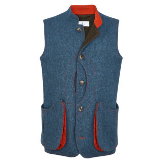 Shooting Gilet Vest – Dark Blue Denim Herringbone & Moleskin Lining – Made in England