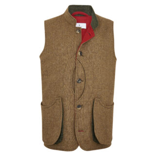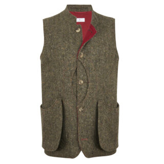 Shooting Gilet Vest – Donegal Tweed & Wine Moleskin Lining – Made in England